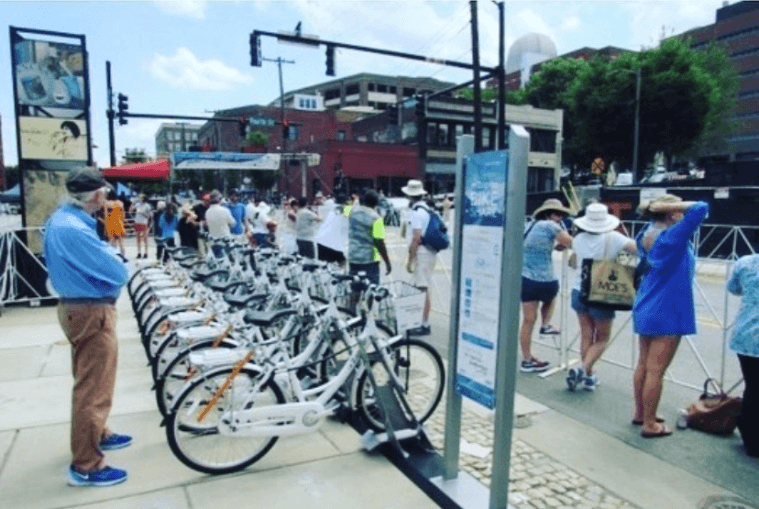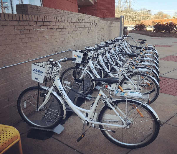 From 2017-2020, the NCC partnered with the City of Winston-Salem and Zagster, Inc., to provide a Bikeshare Network for the citizens and visitors of Winston-Salem. The Network consisted of 10 bikeshare stations with 50 bikes spread out across the community. The WS Bikeshare network offers alternative transportation and/or recreation options to the citizens and visitor of Winston-Salem. In 2020, Zagster, Inc. went out of business with plans of removing the bikeshare network. The NCC rose to the challenge of taking over the WS Bikeshare Network completely. The NCC purchased all of our local assets as well an additional 50 bikes and 10 stations, (100 bikes & 20 stations), sold sponsorships to support the program, rebranded all the bikes and stations and launched the FLOWBIKES Bikeshare. The FLOWBIKES Bikeshare was in operation from April 2021 – March 2023. While in operation there were 10,272 rentals and 3440 individual users. Due to rising insurance deductibles and ¾ of the fleet being stolen or vandalized we decided to discontinue service.